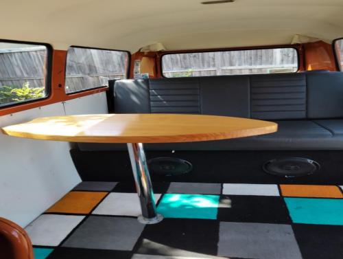 Michael 0418662825 1975 Kombi 2000cc engine. 12 months registration. Rock and roll rear seat. Registered to seat 5. Have fitted a child restraint anchor bar to fit three child seats in rear seat. Fully engineered and is included on rego. papers. New starter motor and battery fitted 12 months ago. Surfboard shaped table in rear with retro carpet. Retro luggage rack on roof. Sound deadening fitted throughout. New radio with phone connection. Fluro light fitted in rear. Insulated window screens to fit windows for camping included.