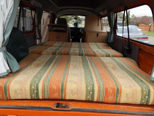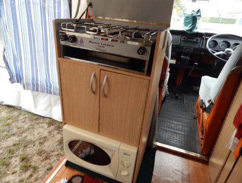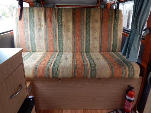 The body underwent rust removal and resprayed in early 2004. After that the Kombi was converted by Suncamper with the following additions: