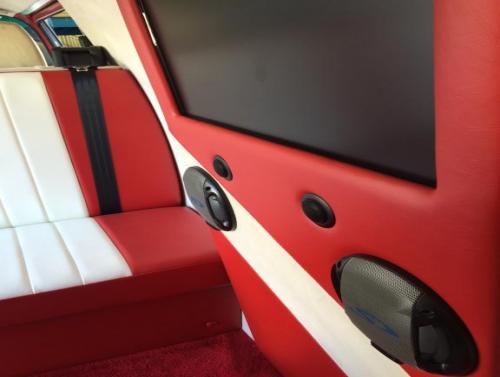 * DVD player linked to large format screen in the rear