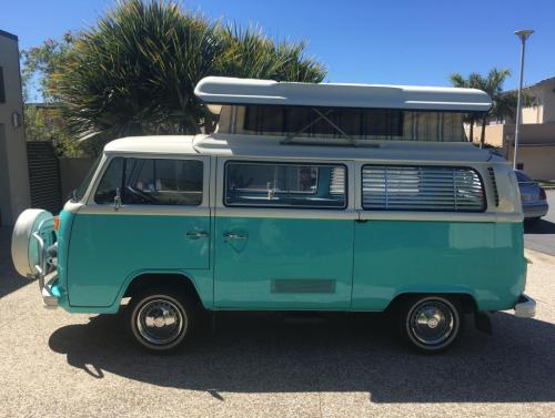 It has a rock and roll bed (which can comfortably sleep 2 adults), plenty of storage space, functioning sink and water tank, window louvers in 3 rear windows and also window shields for all windows providing privacy whilst you sleep. Also has white walled tyres.