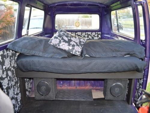 Brendan 0499476520 This kombi comes as a rare speed auto and as mentioned above, has a 2L engine fitted. It has a brand new alternator, brand new battery, brand new chrome "baby moon" hubs, reco starter motor, few brand new seals, all windows are in excellent condition and some new. Comes with a merbau decking dbl bed with bedding and built in speakers under the bed. Also comes with fitted fire extinguisher and heaps of throw in extras ( front spare wheel bumper bar, rubbers, seals , starter motor, two side windows, window winders, dash fan and other little bits and bobs. As also mentioned it will be for sale without reg. All tyres are in good condition.