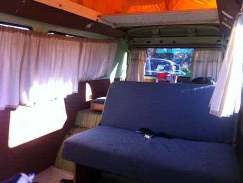 The interior is in good condition a 3/4 rock-n-roll bed and room for you to fit a new camper interior. The poptop roof and canvas are in good working condtion.