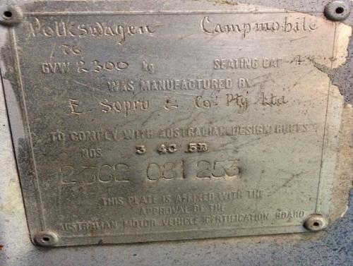 This was an original Sopru campervan conversion. The certification plate is battered, but still in tact!