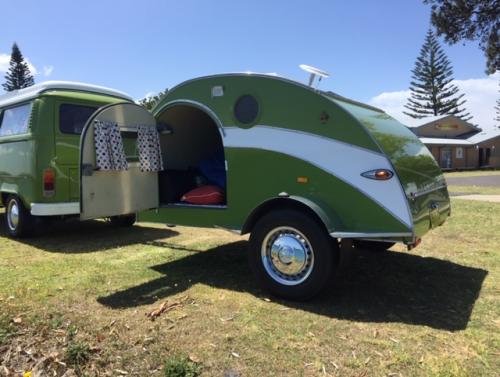 Matching Tear Drop camper - Sprayed to match Kombi Tigre Green