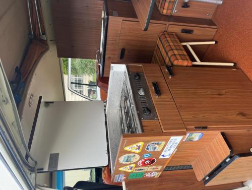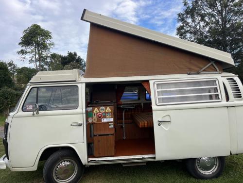 purchase in London til now, including international Euro travel plate! Comes also with a toolbox of original vintage brand new spare parts! Bessie was brought back to Australia after the family European trip; has remained garaged and in our family ever since! This particular design is an exceptional example of optimal use of space, with two double beds, downstairs and upstairs and a single bunk over the steering wheel and front. Bessie seats 5 around an extendable dining table and has a full length waldrobe, gas cooker, and electric sink and ice-box! Some of the German installed extras include a fire extinguisher and lockable petrol cap. It could possibly be a ONE OF A KIND Westfalia in Australia!