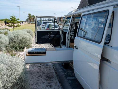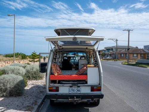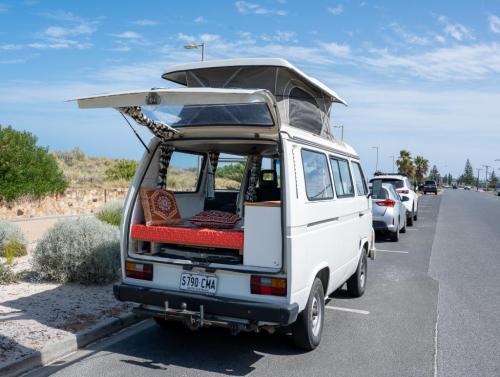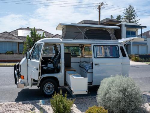Purchased in 2020 from Righteous Kombis - after a new windscreen was fitted, rust spots removed and new covers on the captains seats and doors, were refitted. Fit out by Custom Van Conversions SA in the same year. Fit out includes Bushmans 65L fridge, lithium battery storage, and electrics, sink, water bottles and loads of storage. Bob also has a pop top. Been in touch with previous owners who confirmed a second VW engine was put in whilst in their ownership.They loved and cared for Bob as we have. He has a side awning, new curtains and runs like a 'whoppy' dream. Water cooled. Looking for an owner who will get more use out of him than we have of recent times and will love him just as much. Will throw in new gas cooker and bottle as well as Solar panel. We have a video link we can send if interested which will show you around Bob in more detail. Also check out @bobvanlife on instagram.